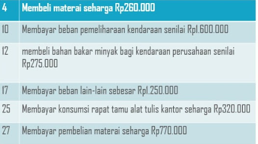 Februari tahun 2021 PT Kawai Indonesia membentuk dana kas kecil yang akan digunakan untuk membayar pengeluaran tunai yang tidak besar jumlahnya dan sering terjadi. Manajemen Perusahaan menetapkan dana kas kecil yang dibentuk senilai Rp2.500.000 akan diisi kembali pada setiap tanggal 1 dan tanggal 16 setiap bulannya. Selama bulan Februari 2021 transaksi PT Kawai Indonesia yang menggunakan kas kecil adalah sebagai berikut :